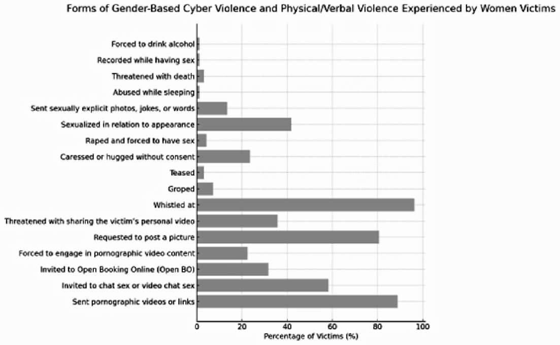 Figure 1: Forms of Gender-Based Cyber Violence and Physical and Verbal Violence in Indonesia Experienced by Women Victims[2]