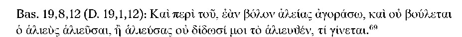 Az e forráshely előtti, terjedelmes ulpianusi szakaszt (D. 19,1,11,18) a Basilika rövidítve és átstrukturálva, de a lényeget tekintve intakt formában megőrizte, jóllehet elvetette a "iactum retis emere" (hálóvetés vétele) figuratív kifejezést, és helyette a neutrális "halászat" (άλείας) szót használta - a római joghoz hasonlóan kizárva a szavatosságot. A Heimbach- és Scheltema- kiadás között nincs lényegi eltérés, előbbi a Fabrot-féle Szünopszisz és a Tipukeitosz, utóbbi a Zepos-féle Szünopszisz alapján rögzítette a szöveget: