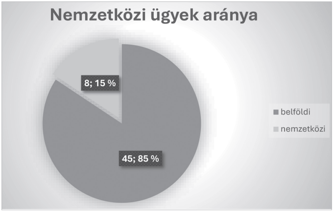 2024-ben a nemzetközi ügyek aránya 15% volt, ez alacsonyabb volt a korábbi évekre jellemzőnél. Felperesi oldalon az alábbi országokban székhellyel rendel-