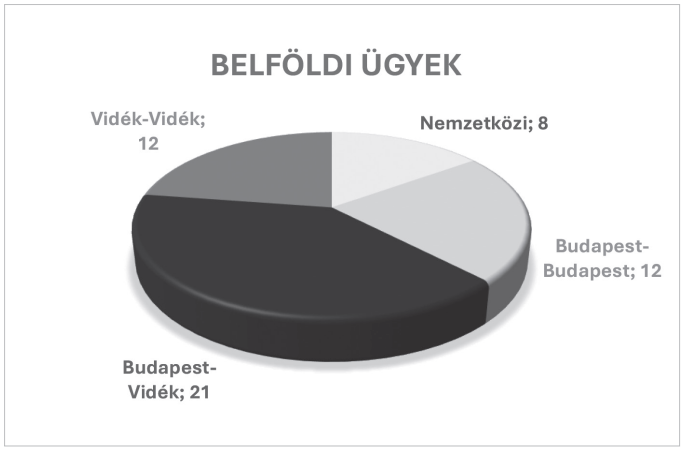 Bár a hazai ügyekkel kapcsolatban régóta él az a kritika, hogy a Választottbíróság csak a budapesti, illetve Pest vármegyei székhelyű cégeket éri el, a vidéki cégek nem ismerik a választottbíróságot, a 2024-ben beérkezett ügyek erre rácáfoltak, kiegyenlítődött a budapesti és vidéki peres felek aránya. Remélhetőleg a vidéki ügyfelek száma a jövőben is magas marad.