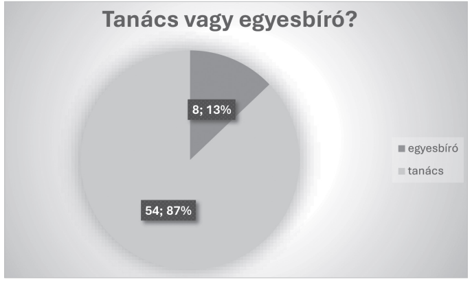 2024-ben 82 személy járt el választottbíróként, akik 172 választottbírói tisztséget töltöttek be. 8 ügyet bírált el egyesbíró, illetve 54 ügyben három választottbíróból álló választottbírósági tanács járt el. Ahogy a táblázat is mutatja, legkevésbé az egyesbíró személyében sikerült megegyezni a feleknek, csupán egy ügyben tudtak megállapodni az egyesbíró személyében. Ezzel szemben a felek által jelölt választottbírók csupán három esetben kérték a Választottbíróságtól az elnök kijelölését.