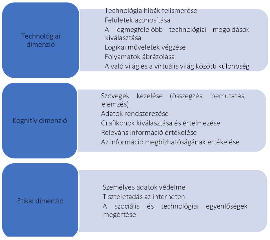 1. ábra: A digitális kompetencia három dimenziója.