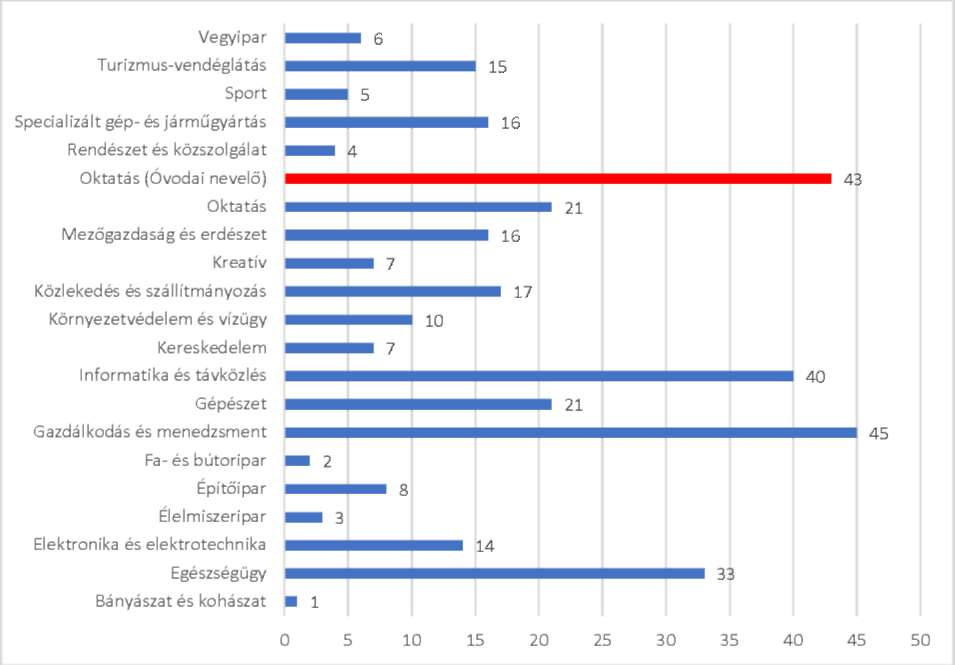 átlépte a képzések száma a háromszázat. 334 képzést 159 szakképző intézmény 32 felsőoktatási intézménnyel együttműködve hirdetett meg.[25] Ekkor már 43 helyen hirdetik meg az országban az óvodai nevelő képzést, ami a gazdálkodás és menedzsment mint legnépszerűbb ágazat után a második helyet foglalja el, és megelőzi a "csak" 40 helyen induló informatika és távközlés ágazatot. Ha azonban az 'oktatás' ágazatot, amibe az óvodai nevelő szakma is tartozik, összevontan nézzük, akkor mindegyik közül a legnépszerűbb ágazat 64 indítási hellyel.