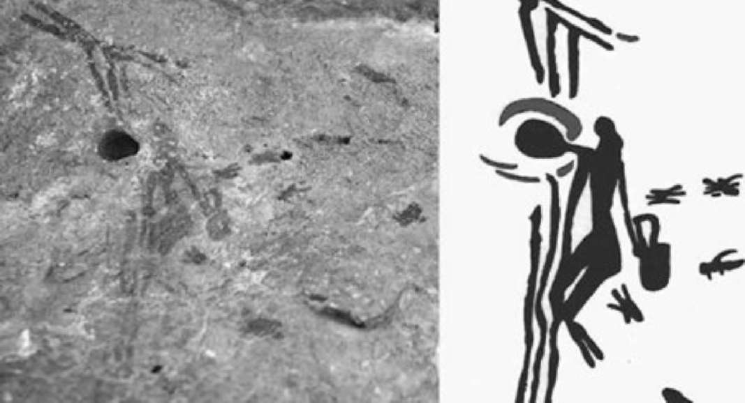 Figure 1 - Rock painting of honey Hunting at the Araña Caves in Valencia, Spain (Turismo Comunidad Valenciana)[7]