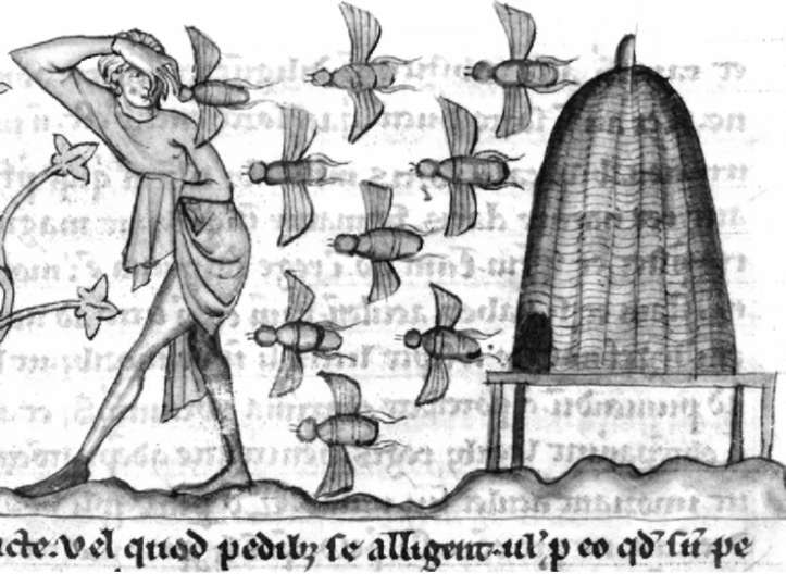 Figure 3 - Bees in military defense. (De Natura animalium, Cambrai ca. 1270 Douai, Bibliothèque municipale, ms. 711, fol. 37 r.)
